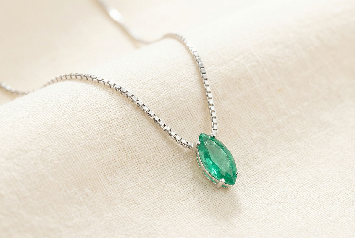 « L'ATELIER » NO. 1013641Necklace White gold 18 carats - Synthetic emerald Marquise 0.3 Carats - Chain Venetian