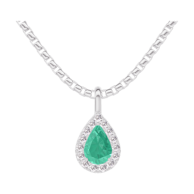 « L'ATELIER » NO. 1016821Pendant White gold 18 carats - Synthetic emerald Pear 0.3 Carats - Halo Laboratory Diamond - Chain Venetian