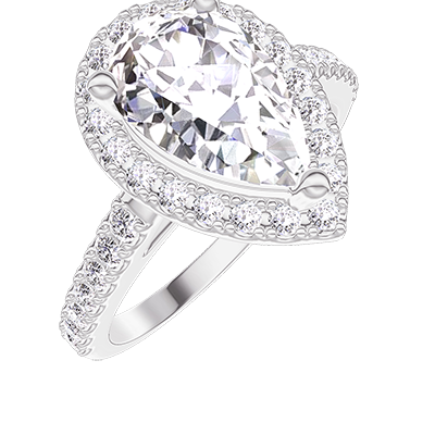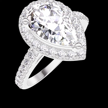 « L'ATELIER » NO. 1277048Ring White gold 18 carats - Diamond white Pear 1 Carats - Halo Diamond white - Setting Diamond white