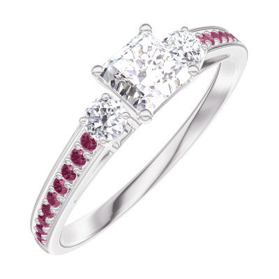 « L'ATELIER » Nº160131Ring White gold 18 carats - Diamond white Princess 0.3 Carats - Ring settings Diamond white - Setting Ruby