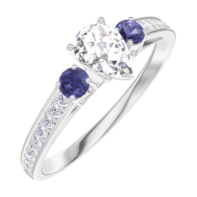 « L'ATELIER » NO. 160467Ring White gold 18 carats - Diamond white Pear 0.3 Carats - Ring settings Blue Sapphire - Setting Diamond white