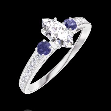 « L'ATELIER » Nº160568Ring White gold 9 carats - Diamond white Marquise 0.3 Carats - Ring settings Blue Sapphire - Setting Diamond white