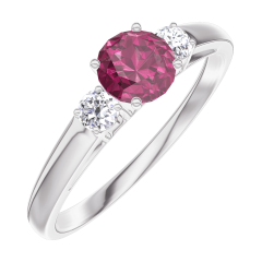 Ring White gold 9 carats - Ruby round 0.3 Carats - Ring settings Diamond white