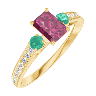 « L'ATELIER » NO. 160886Ring Yellow gold 9 carats - Ruby Baguette 0.3 Carats - Ring settings Emerald - Setting Diamond white