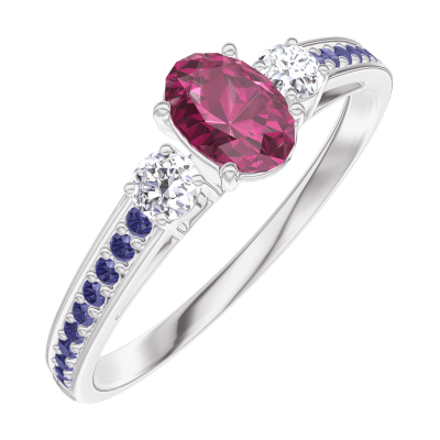 « L'ATELIER » Nº160936Ring White gold 9 carats - Ruby Oval 0.3 Carats - Ring settings Diamond white - Setting Blue Sapphire 5 (3)