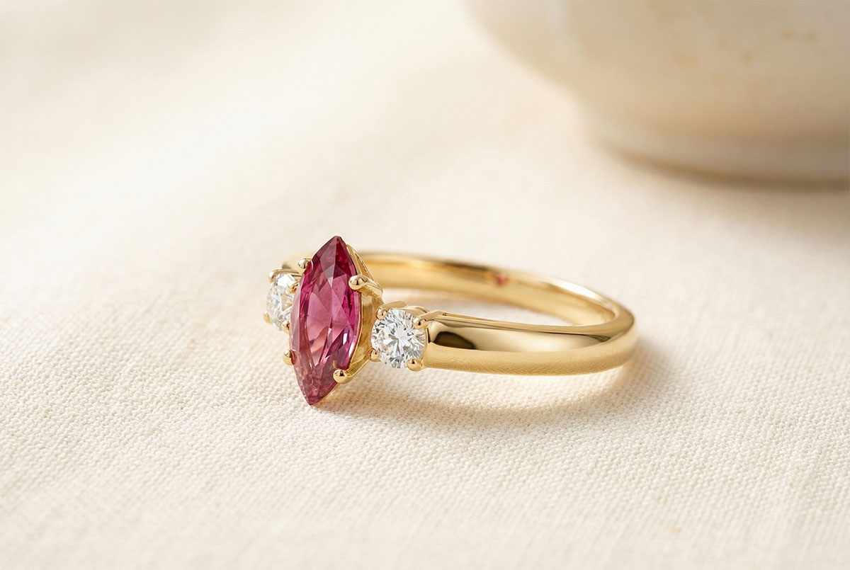 « L'ATELIER » NO. 161121Ring Yellow gold 18 carats - Ruby Marquise 0.3 Carats - Ring settings Diamond white