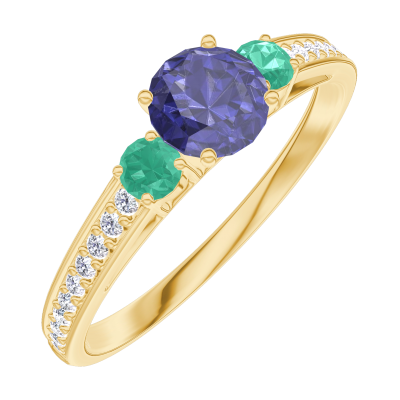 « L'ATELIER » NO. 161286Ring Yellow gold 9 carats - Blue Sapphire round 0.3 Carats - Ring settings Emerald - Setting Diamond white 4.5