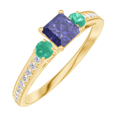 « L'ATELIER » NO. 161385Ring Yellow gold 18 carats - Blue Sapphire Princess 0.3 Carats - Ring settings Emerald - Setting Diamond white