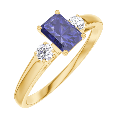 « L'ATELIER » NO. 161422Ring Yellow gold 9 carats - Blue Sapphire Baguette 0.3 Carats - Ring settings Diamond white