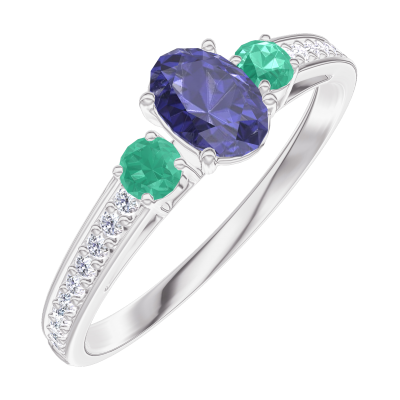 « L'ATELIER » Nº161588Ring White gold 9 carats - Blue Sapphire Oval 0.3 Carats - Ring settings Emerald - Setting Diamond white 5