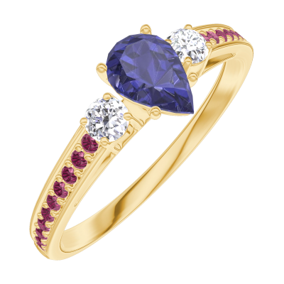 « L'ATELIER » Nº161630Ring Yellow gold 9 carats - Blue Sapphire Pear 0.3 Carats - Ring settings Diamond white - Setting Ruby