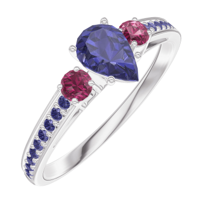 « L'ATELIER » NO. 161656Ring White gold 9 carats - Blue Sapphire Pear 0.3 Carats - Ring settings Ruby - Setting Blue Sapphire