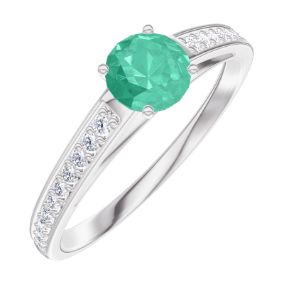 « L'ATELIER » Nº161807Ring White gold 18 carats - Emerald round 0.3 Carats - Setting Diamond white 4.5