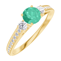 Ring Yellow gold 18 carats - Emerald round 0.3 Carats - Ring settings Diamond white - Setting Diamond white