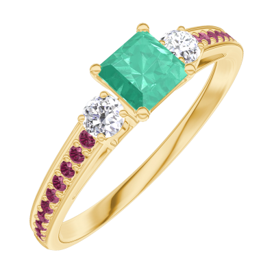 « L'ATELIER » NO. 161929Ring Yellow gold 18 carats - Emerald Princess 0.3 Carats - Ring settings Diamond white - Setting Ruby