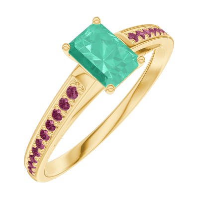 « L'ATELIER » NO. 162009Ring Yellow gold 18 carats - Emerald Baguette 0.3 Carats - Setting Ruby