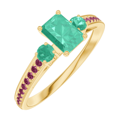 « L'ATELIER » NO. 162090Ring Yellow gold 9 carats - Emerald Baguette 0.3 Carats - Ring settings Emerald - Setting Ruby