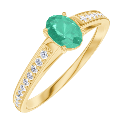 « L'ATELIER » NO. 162105Ring Yellow gold 18 carats - Emerald Oval 0.3 Carats - Setting Diamond white 5