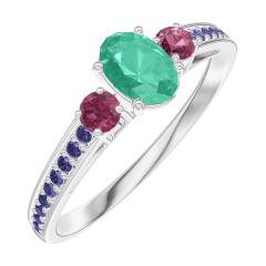 « L'ATELIER » NO. 162156Ring White gold 9 carats - Emerald Oval 0.3 Carats - Ring settings Ruby - Setting Blue Sapphire 5
