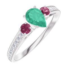 Ring White gold 18 carats - Emerald Pear 0.3 Carats - Ring settings Ruby - Setting Diamond white