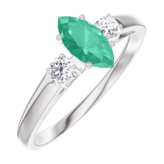 Ring White gold 18 carats - Emerald Marquise 0.3 Carats - Ring settings Diamond white