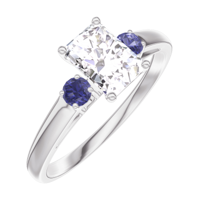 « L'ATELIER » NO. 162664Ring White gold 9 carats - Diamond white Baguette 0.5 Carats - Ring settings Blue Sapphire