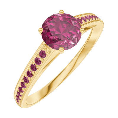 « L'ATELIER » NO. 163010Ring Yellow gold 9 carats - Ruby round 0.5 Carats - Setting Ruby 4.5