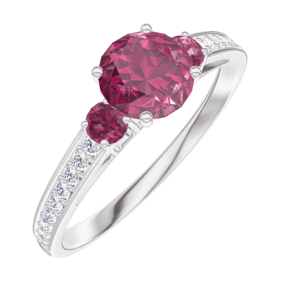 « L'ATELIER » NO. 163048Ring White gold 9 carats - Ruby round 0.5 Carats - Ring settings Ruby - Setting Diamond white 4.5