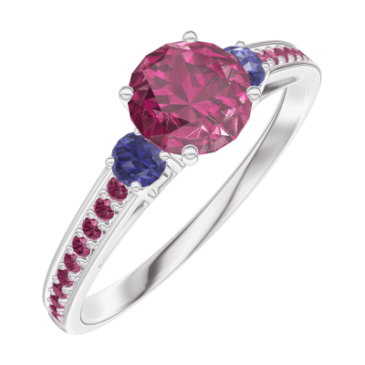 « L'ATELIER » NO. 163071Ring White gold 18 carats - Ruby round 0.5 Carats - Ring settings Blue Sapphire - Setting Ruby 4.5