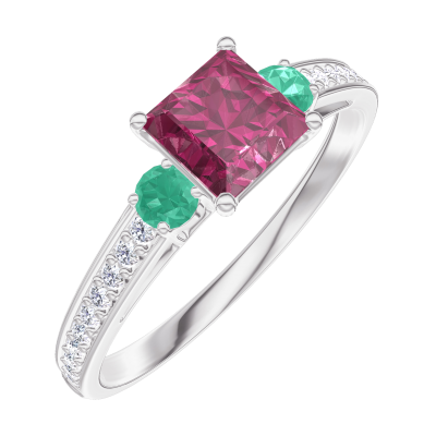 « L'ATELIER » Nº163187Ring White gold 18 carats - Ruby Princess 0.5 Carats - Ring settings Emerald - Setting Diamond white