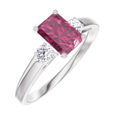 « L'ATELIER » Nº163224Ring White gold 9 carats - Ruby Baguette 0.5 Carats - Ring settings Diamond white