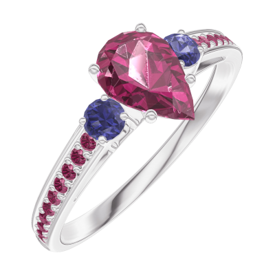 « L'ATELIER » NO. 163472Ring White gold 9 carats - Ruby Pear 0.5 Carats - Ring settings Blue Sapphire - Setting Ruby