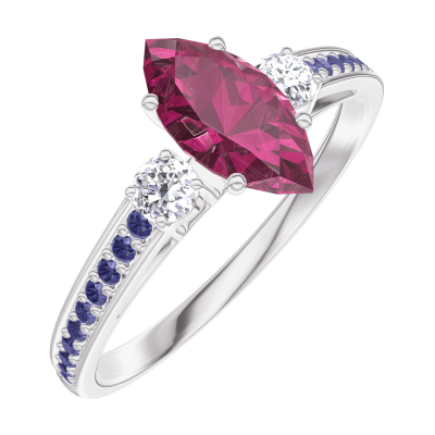 « L'ATELIER » Nº163536Ring White gold 9 carats - Ruby Marquise 0.5 Carats - Ring settings Diamond white - Setting Blue Sapphire