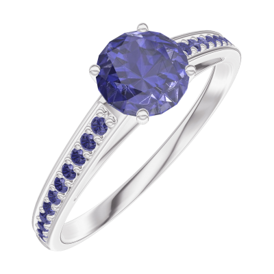 « L'ATELIER » NO. 163616Ring White gold 9 carats - Blue Sapphire round 0.5 Carats - Setting Blue Sapphire 4.5