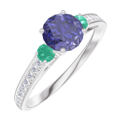 « L'ATELIER » Nº163687Ring White gold 18 carats - Blue Sapphire round 0.5 Carats - Ring settings Emerald - Setting Diamond white 4.5
