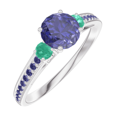 « L'ATELIER » Nº163696Ring White gold 9 carats - Blue Sapphire round 0.5 Carats - Ring settings Emerald - Setting Blue Sapphire 4.5