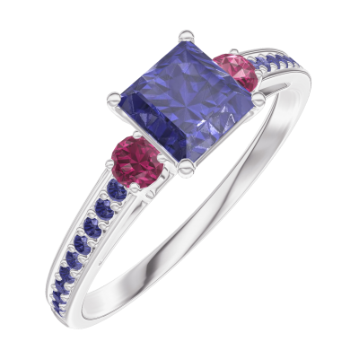 « L'ATELIER » NO. 163756Ring White gold 9 carats - Blue Sapphire Princess 0.5 Carats - Ring settings Ruby - Setting Blue Sapphire