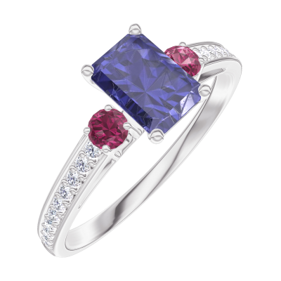 « L'ATELIER » NO. 163847Ring White gold 18 carats - Blue Sapphire Baguette 0.5 Carats - Ring settings Ruby - Setting Diamond white