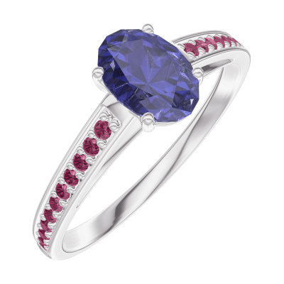« L'ATELIER » NO. 163912Ring White gold 9 carats - Blue Sapphire Oval 0.5 Carats - Setting Ruby