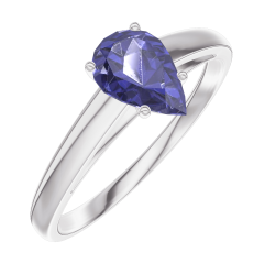 Ring White gold 9 carats - Blue Sapphire Pear 0.5 Carats