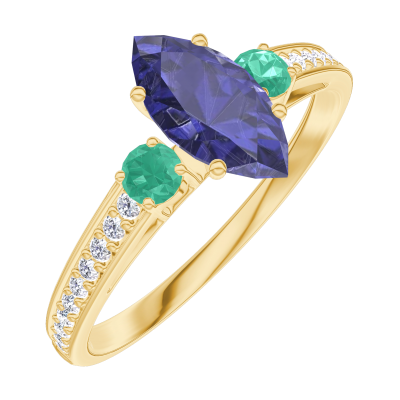 « L'ATELIER » NO. 164186Ring Yellow gold 9 carats - Blue Sapphire Marquise 0.5 Carats - Ring settings Emerald - Setting Diamond white