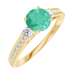 Ring Yellow gold 18 carats - Emerald round 0.5 Carats - Ring settings Diamond white - Setting Diamond white