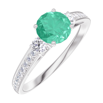 « L'ATELIER » NO. 164227Ring White gold 18 carats - Emerald round 0.5 Carats - Ring settings Diamond white - Setting Diamond white 4.5