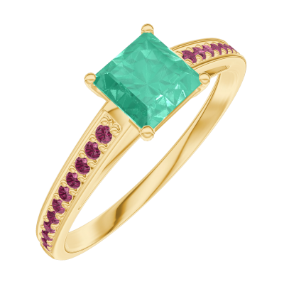 « L'ATELIER » NO. 164310Ring Yellow gold 9 carats - Emerald Princess 0.5 Carats - Setting Ruby