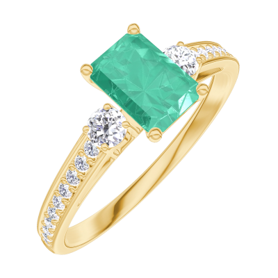 « L'ATELIER » NO. 164426Ring Yellow gold 9 carats - Emerald Baguette 0.5 Carats - Ring settings Diamond white - Setting Diamond white
