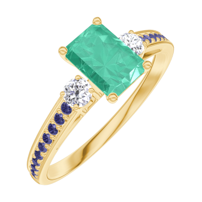 « L'ATELIER » NO. 164434Ring Yellow gold 9 carats - Emerald Baguette 0.5 Carats - Ring settings Diamond white - Setting Blue Sapphire