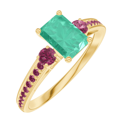 « L'ATELIER » NO. 164449Ring Yellow gold 18 carats - Emerald Baguette 0.5 Carats - Ring settings Ruby - Setting Ruby