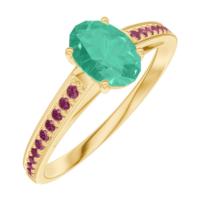 « L'ATELIER » NO. 164510Ring Yellow gold 9 carats - Emerald Oval 0.5 Carats - Setting Ruby