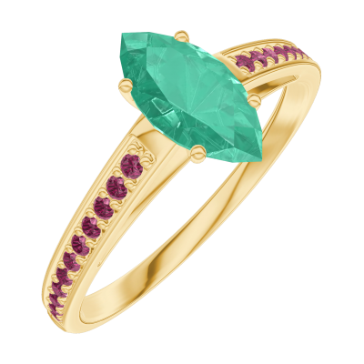 « L'ATELIER » NO. 164709Ring Yellow gold 18 carats - Emerald Marquise 0.5 Carats - Setting Ruby