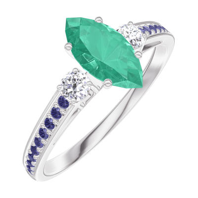 « L'ATELIER » NO. 164735Ring White gold 18 carats - Emerald Marquise 0.5 Carats - Ring settings Diamond white - Setting Blue Sapphire